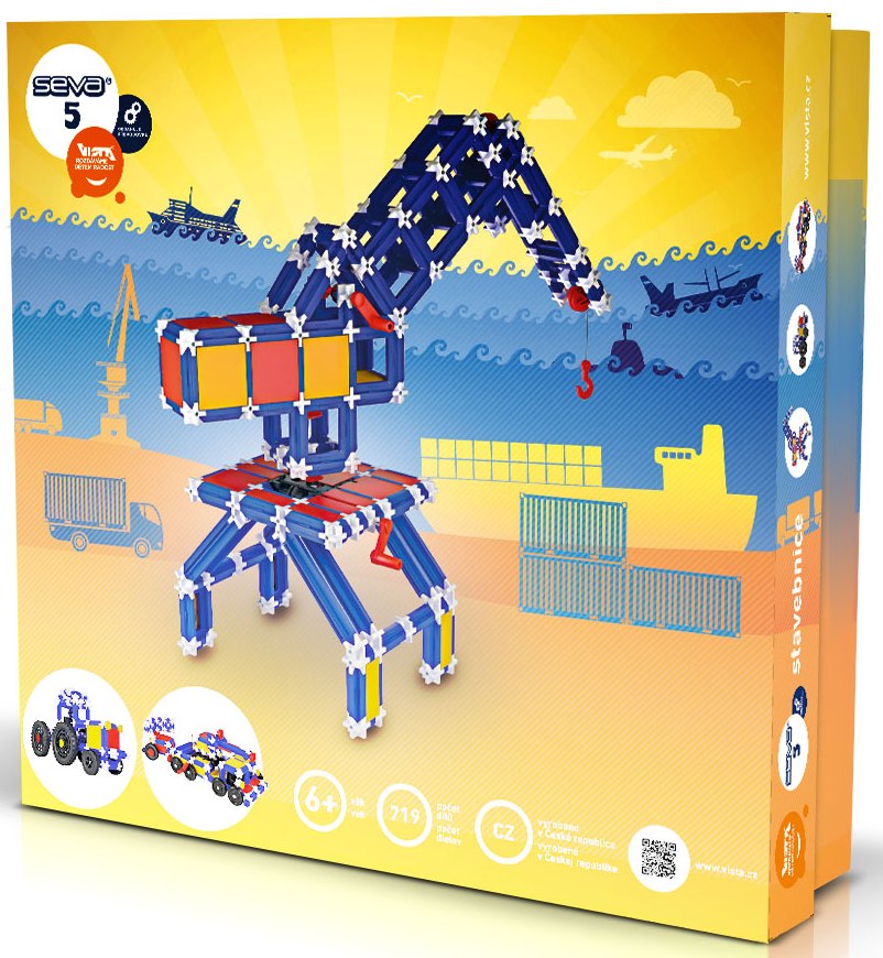 Seva 5 Technic713 Základní stavební díly + 18 kol + 4 traktorová kola + 2 sedadla + 2 volanty + 18 ozubených koleček. Vhodné pro stavbu funkčních modelů a strojů. Klikou můžete pohánět jeřáb nebo kolotoč, kola letadla pohání vrtuli a další. Plánky přiloženy. Od 6 let.794